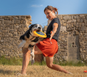 Une activitée sportive et ludique où le chien attrape un frisbee lancé par le maître . Ce sport développe agilité, coordination et rapidité chez le chien. Le frisbee renforce la complicité entre le chien et son maître tout en offrant une occasion de se dépenser physiquement et mentalement.